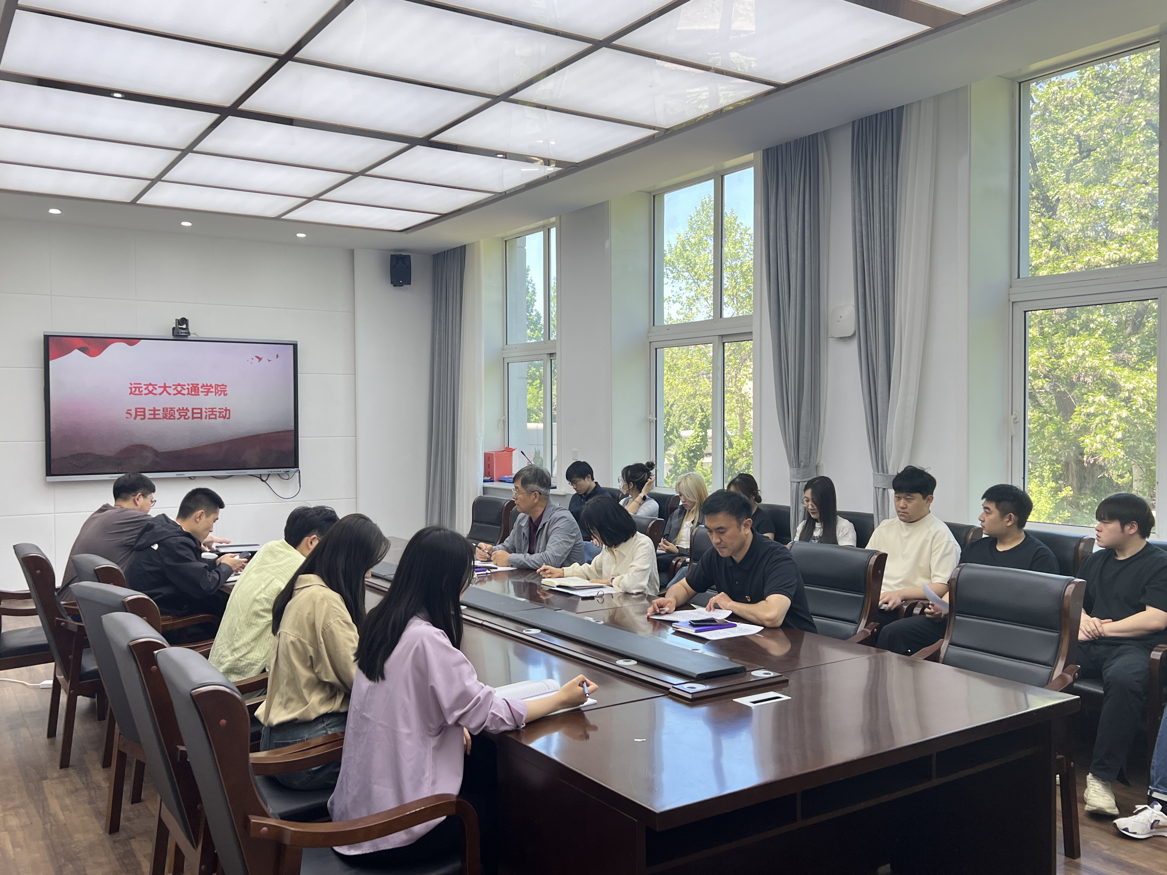 直属党支部于沙河口校区Y211开展5月主题党日活动暨党纪学习教育第二次集中学习。全体党员参加会议,直属党支部书记齐昆主持会议。